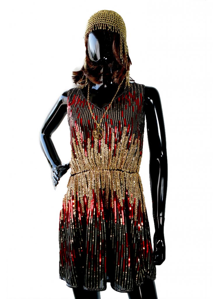 Be the first to review “70s Disco Dress – Red And Gold Sequin”