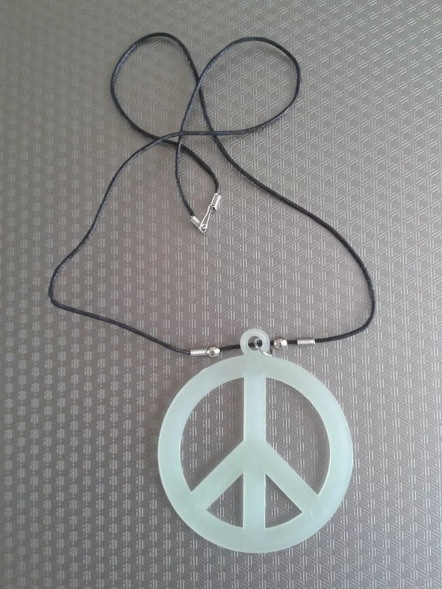 Capture the peace and love of the 70s with this clear necklace that glows in the dark! Featuring a simple yet vibrant design, it’s perfect for adding a touch of a retro style. The glow-in-the-dark feature makes it an eye-catching accessory for nighttime for festival fun.