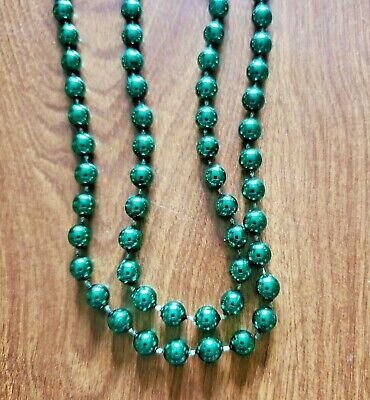 Vibrant Mardi Gras bottle green beads with a metallic finish, perfect for parades, parties, and festive celebrations. Lightweight and eye-catching!