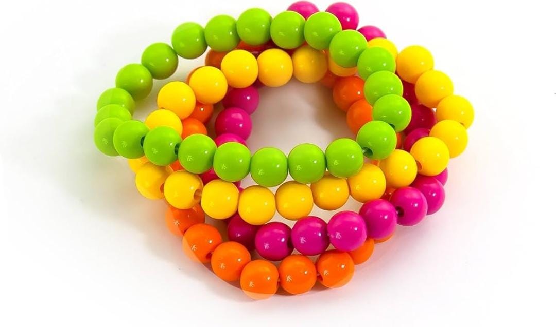 80s-inspired bead bracelets in vibrant pink, yellow, green, and orange, perfect for a BALD retro touch.