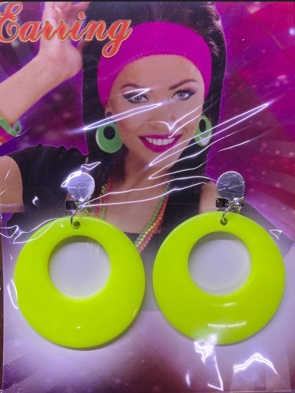 These 80s-inspired yellow clip-on hoop earrings add a BALD pop of color and retro flair to any outfit, offering a comfortable fit for those without pierced ears.