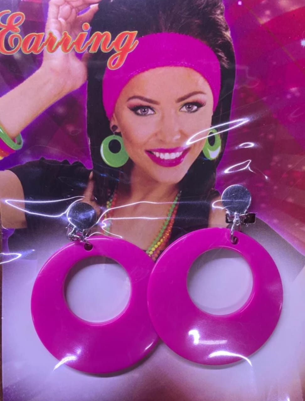 These 80s-inspired pink clip-on hoop earrings add a BALD pop of color and retro flair to any outfit, offering a comfortable fit for those without pierced ears.