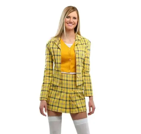 Channel ultimate 90s fashion royalty with this iconic Cher Horowitz costume from Clueless! Inspired by her unforgettable wardrobe, this look features the signature yellow plaid blazer and matching skirt, capturing Cher’s bold, preppy, and perfectly coordinated style. The outfit pairs effortlessly with a crisp white top, knee-high socks, and classic schoolgirl accessories for that instantly recognizable Beverly Hills flair.