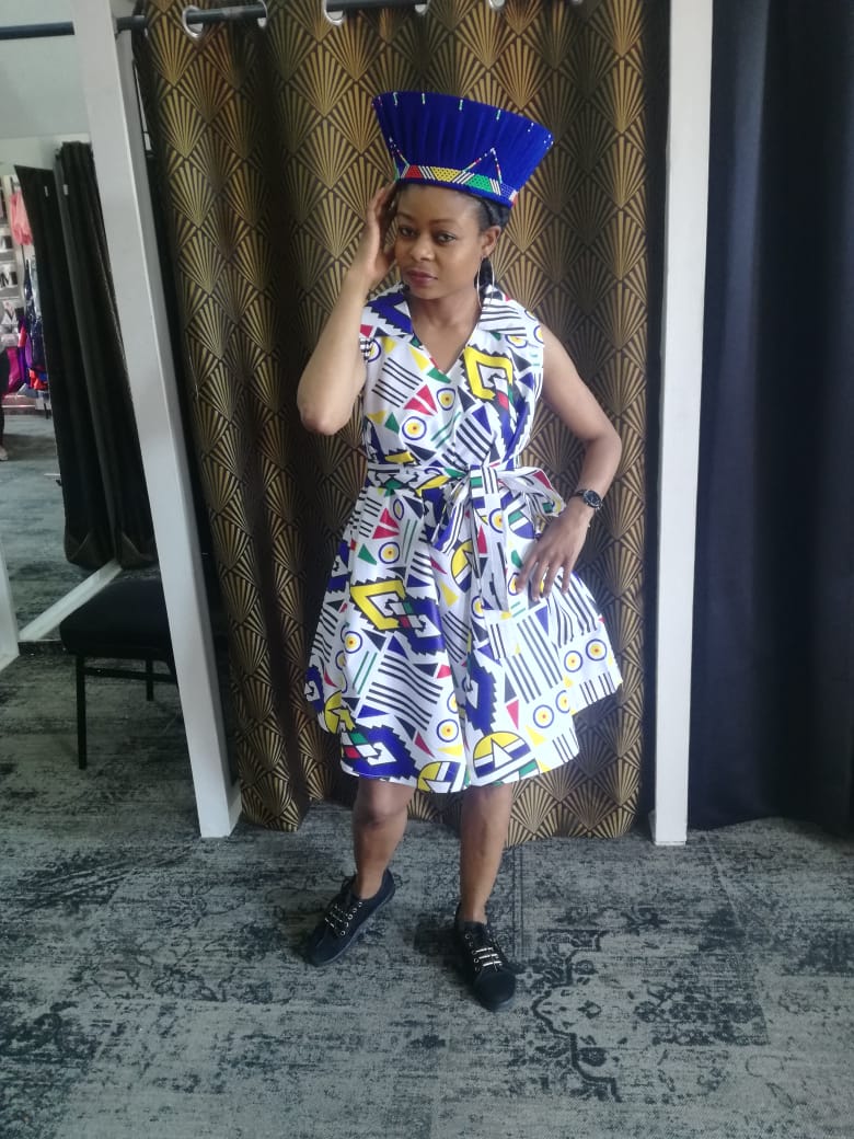 African Heritage Afropolitan White Shwe Shwe Dress -ladies And Accessories – Blue Zulu Headpieces Isicholo