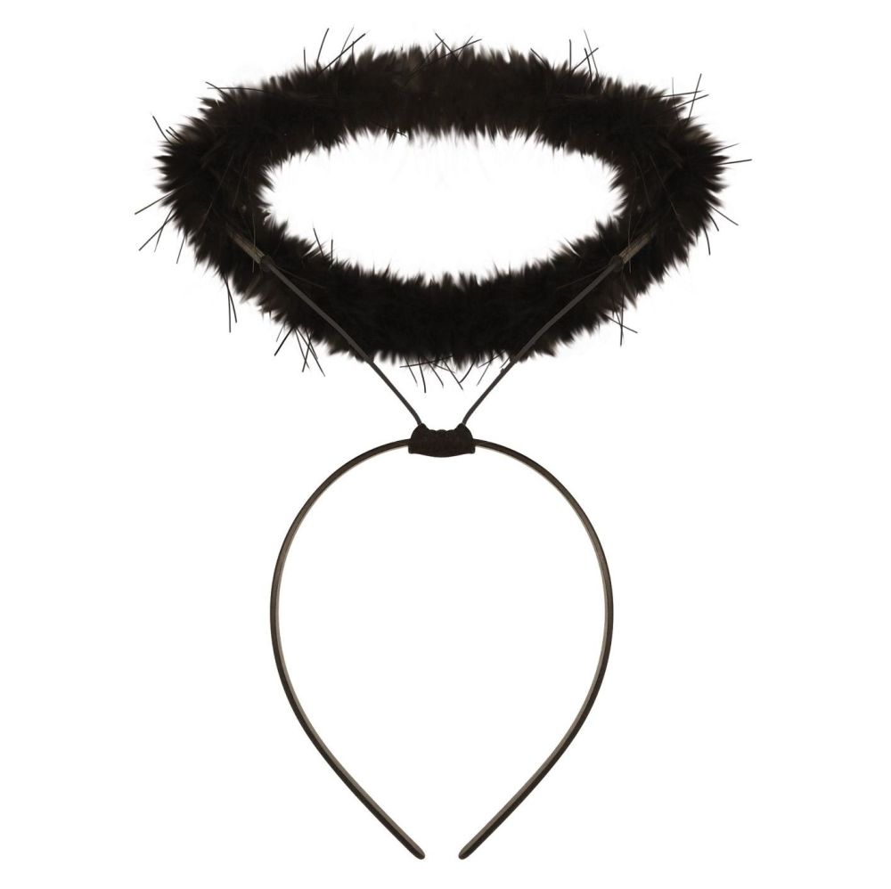 Black Angel Halo Alice Band: Add a mythical and edgy touch to your look with this black angel halo alice band! Featuring a soft, fluffy black halo attached to a comfortable alice band, it’s perfect for dark angel costumes, themed parties, for Halloween events. Lightweight and easy to wear, this accessory completes your enchanting and mysterious outfit.