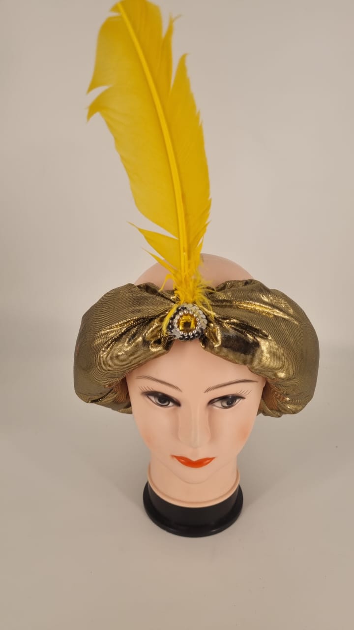 Gold Arabian Ring Hat with Feather – Elegant Costume Accessory 🌟🦢