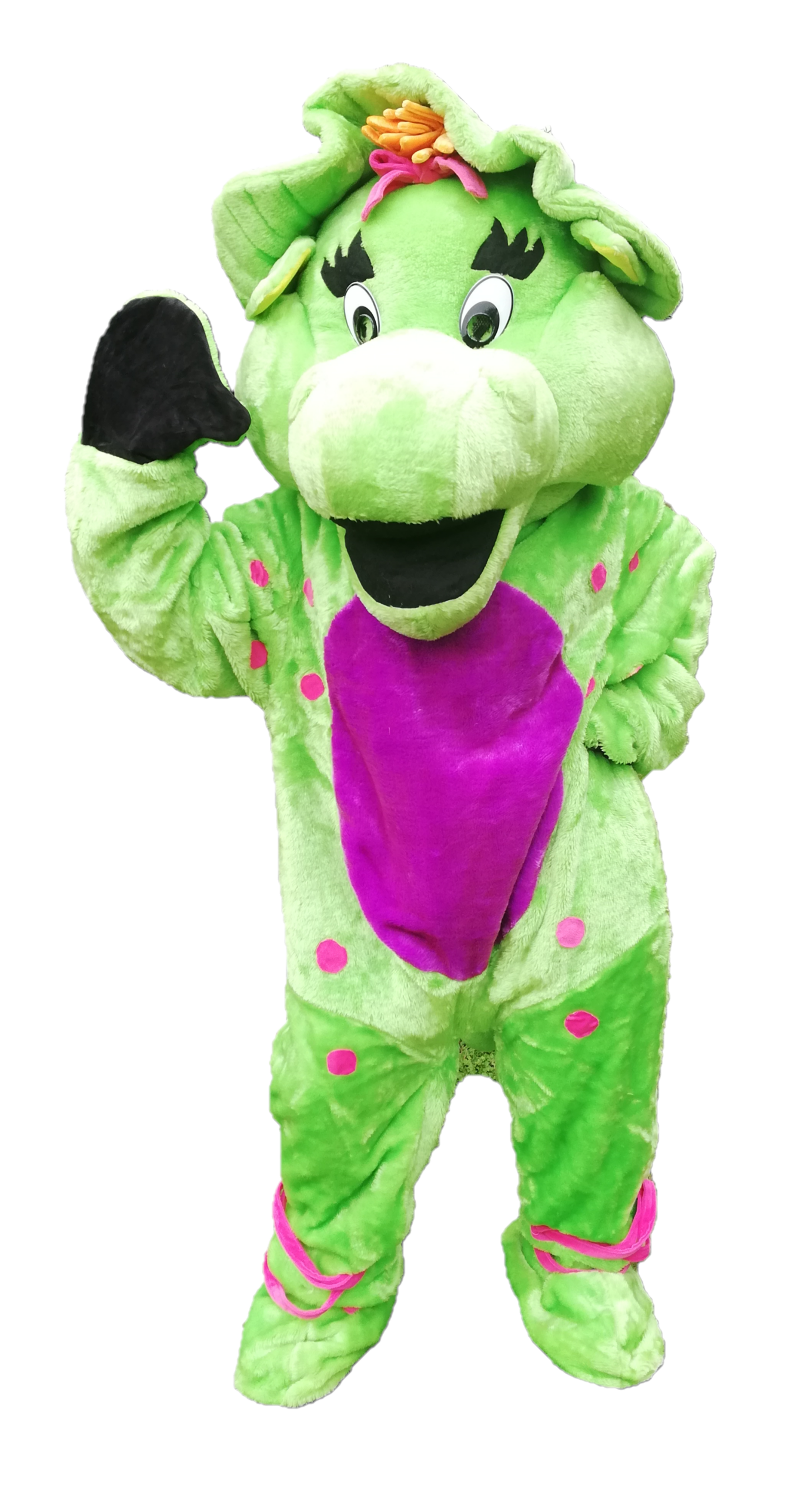 Bring colour, fun, and excitement to your event with our Baby Bop mascot costume for hire, inspired by the adorable green dinosaur from Barney & Friends. Known for her cheerful personality and playful charm, Baby Bop is a favourite among young children. Therefore, she is the perfect addition to any kids’ party or themed event.