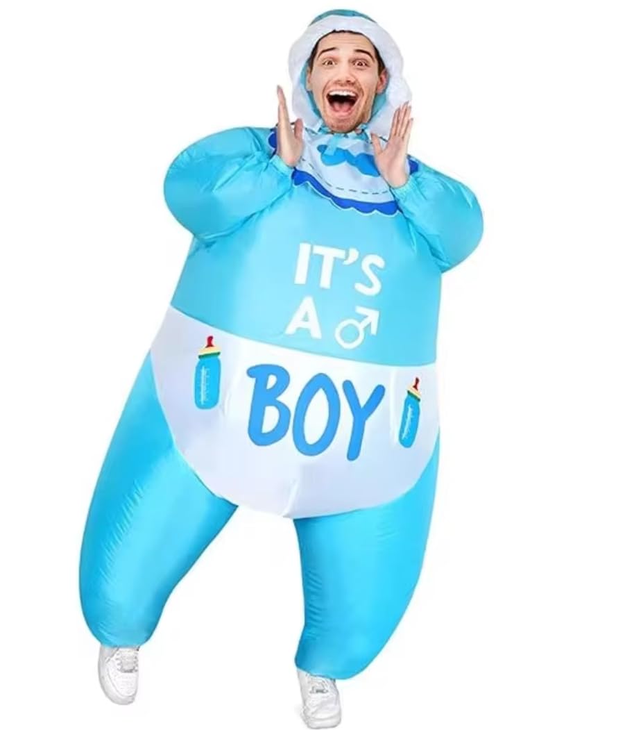 Get ready for laughs and unforgettable moments with our Inflatable Baby Boy costume with nappy for hire. This hilarious and oversized costume is designed to stand out, making it perfect for parties, pranks, and fun events. With its playful baby design and exaggerated features, it instantly creates a light-hearted and entertaining atmosphere. Therefore, it is an excellent choice for events where humour and attention-grabbing visuals are key.