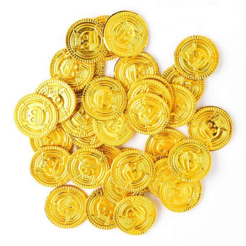Plastic Pirate Gold: Lightweight, durable, and shiny treasure coins perfect for play, parties, for decorations. Safe, fun, and reusable for endless pirate adventures!