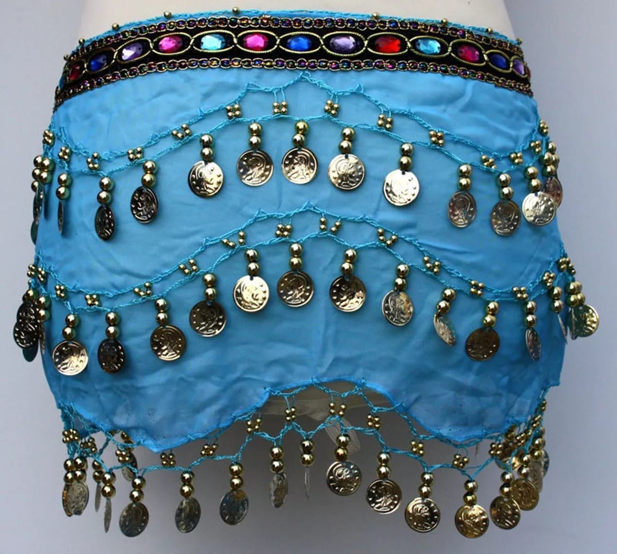 This beautiful sky blue belly dancing skirt adds a refreshing and soft touch to your dance attire. The flowing fabric creates an elegant silhouette that moves gracefully with every step. The multi-colored band at the waist adds a vibrant contrast, enhancing the skirt’s playful charm. Perfect for performances, rehearsals, for casual dance sessions, this skirt blends elegance with a lovely spirit. The lightweight material ensures comfort and ease of movement, making it a versatile and captivating addition to your belly dancing wardrobe.