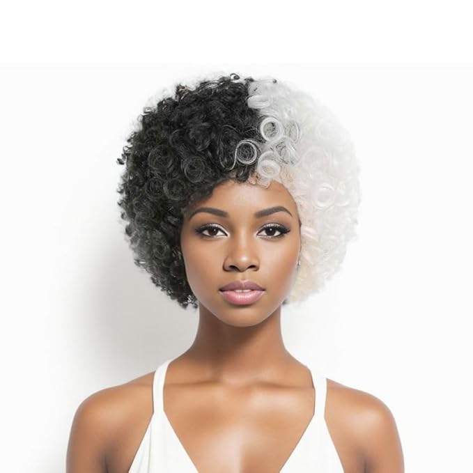 Make a statement with this striking Black and White Afro Wig, perfect for costumes, cosplay, themed events, or just adding a BALD flair to your style! This eye-catching wig features a voluminous afro with a unique black-and-white color scheme HAT stands out in any crowd.