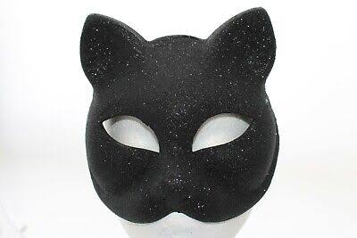 A striking black cat mask with sleek, feline-inspired details, offering a mysterious and bold look that combines elegance with a playful edge.