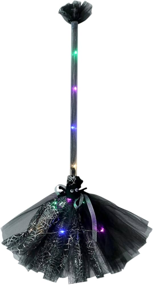 A sleek black light-up witch broomstick, exuding mystery and magic with its glowing effect. Perfect for nighttime Halloween festivities or adding an enchanting touch to your witch costume, it brings a spooky, luminous vibe to any event!