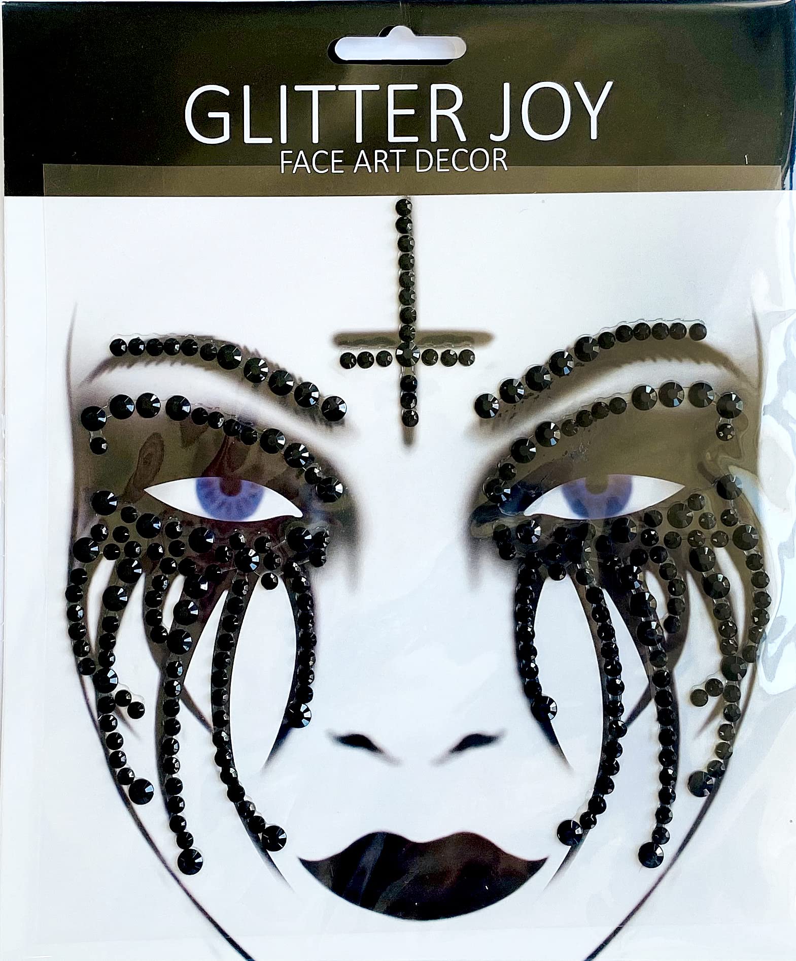 Black rhinestone face art uses dark, elegant rhinestones to create striking, bold designs on the face. These rhinestones add a sophisticated touch of sparkle, often arranged in intricate patterns like lines, shapes, for accents around the eyes, forehead, for cheekbones. The black rhinestones offer a unique, edgy contrast, giving the design a glamorous and dramatic effect.