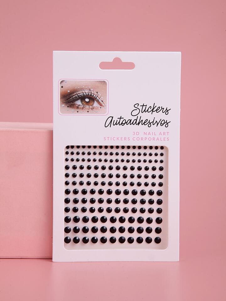 A black rhinestone pearl face sticker, combining sparkling black rhinestones with elegant pearls to create a glamorous, eye-catching design. Perfect for adding a touch of sophistication and sparkle to your look, this sticker is ideal for festivals, parties, for special occasions.