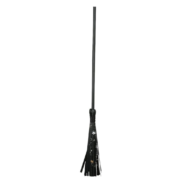 A classic black witch broomstick with sparkling stars, exuding a mystical and elegant vibe. Perfect for completing a witch costume, this broomstick adds a touch of enchantment and magic to your Halloween or costume event!