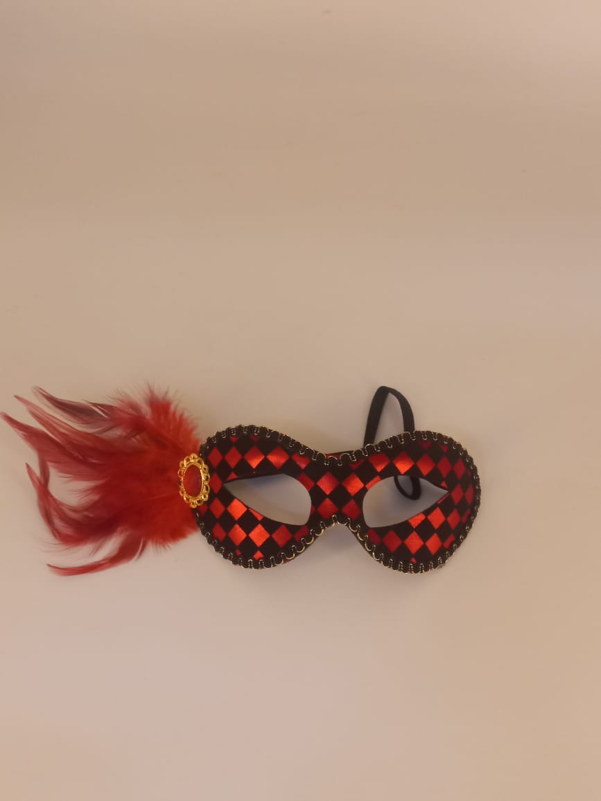 A black with red dot feather mask is a striking accessory, combining the elegance of black with bold red dot details and dramatic feathers. Ideal for masquerades, costume parties, or any event that calls for a mysterious yet vibrant look, this mask adds a touch of sophistication and flair.