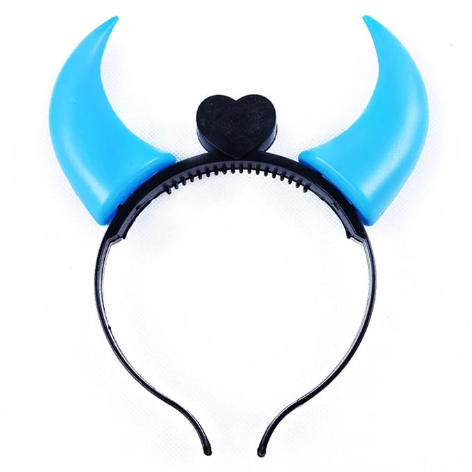 A striking blue devil design with LED light-up features for a glowing, eye-catching effect. Perfect for parties, raves, or themed events. Comfortable and adjustable alice band, one-size-fits-most. Adds a fun, dramatic touch to any outfit.