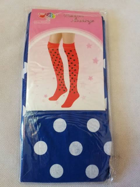 These blue polka dot stockings are a charming and playful addition to any wardrobe. The vibrant blue background is dotted with evenly spaced, contrasting polka dots, creating a fun and whimsical design. Made from a soft and stretchy fabric, these stockings provide a comfortable fit and excellent durability. Perfect for pairing with dresses, skirts, for costumes, they add a splash of personality to both casual and formal looks. Whether for a themed event for everyday wear, these polka dot stockings are sure to stand out.