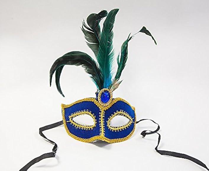 A blue design with gold trim and feathers combines elegance and drama, featuring rich blue fabric accented with luxurious gold details and delicate feathers for a striking, sophisticated look.