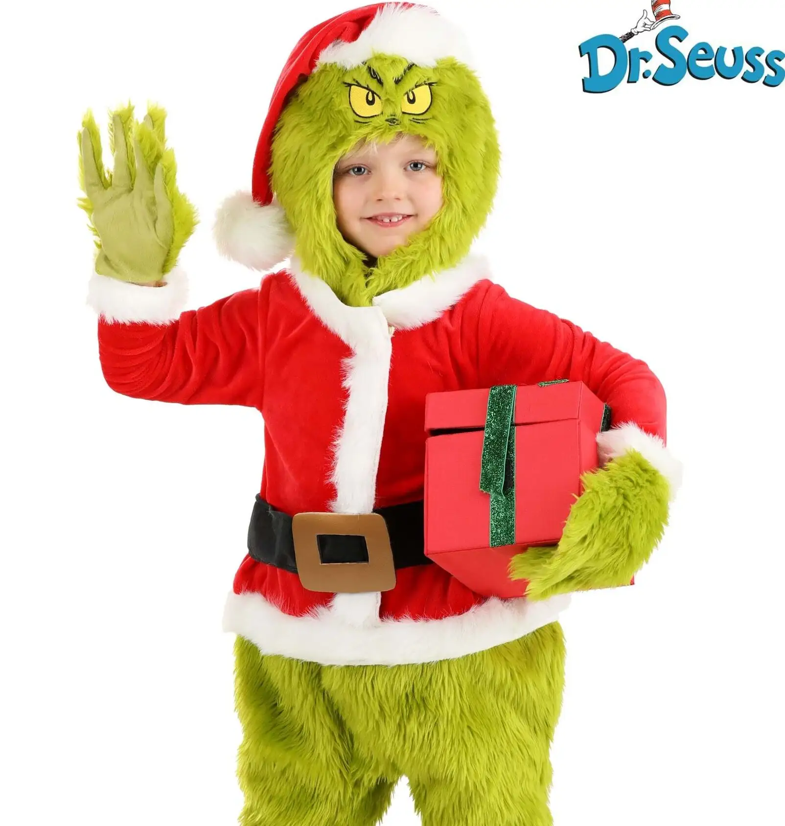 This costume is perfect for kids who want to channel the Grinch’s silly side—without hiding their holiday smiles! 💚🎄😄