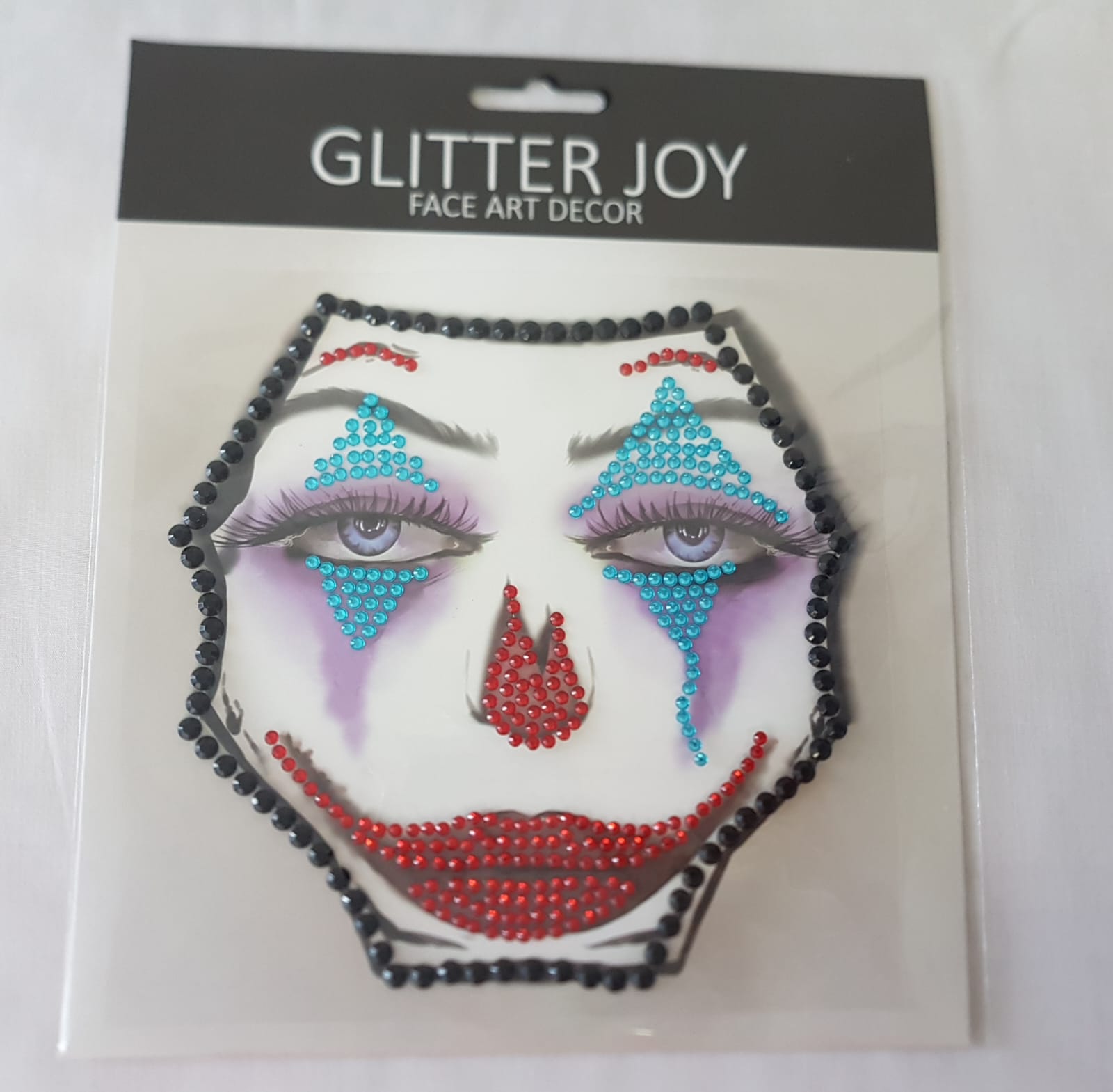 Clown Day of the Dead face art with glitter joy combines the vibrant tradition of Dia de los Muertos (Day of the Dead) with a playful clown twist, enhanced by sparkling glitter. This design features a colorful sugar skull-inspired face with clown elements like a red nose and bright, exaggerated features, all adorned with glitter for a joyful, festive vibe. The combination of intricate details, bold colors, and shimmering accents creates a lovely and fun celebration of both culture and creativity.