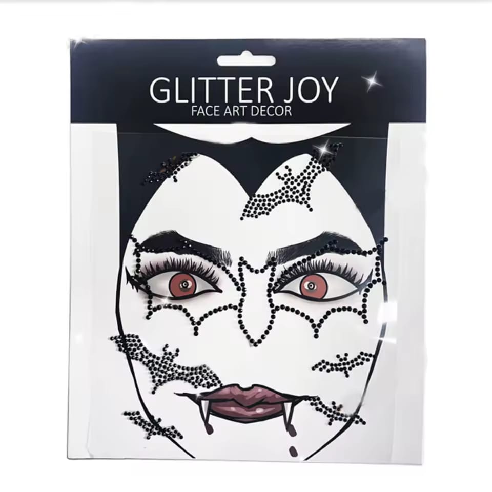 Clown Halloween face art with glitter joy combines spooky and playful elements for a festive look. The design features exaggerated clown makeup, like bold, colorful eyes, a painted nose, and a wide smile, enhanced with glitter accents for a sparkling, joyful touch. The use of glitter adds a fun, celebratory energy, while the clown makeup keeps it whimsical and Halloween-inspired, making it perfect for a vibrant, spooky celebration.