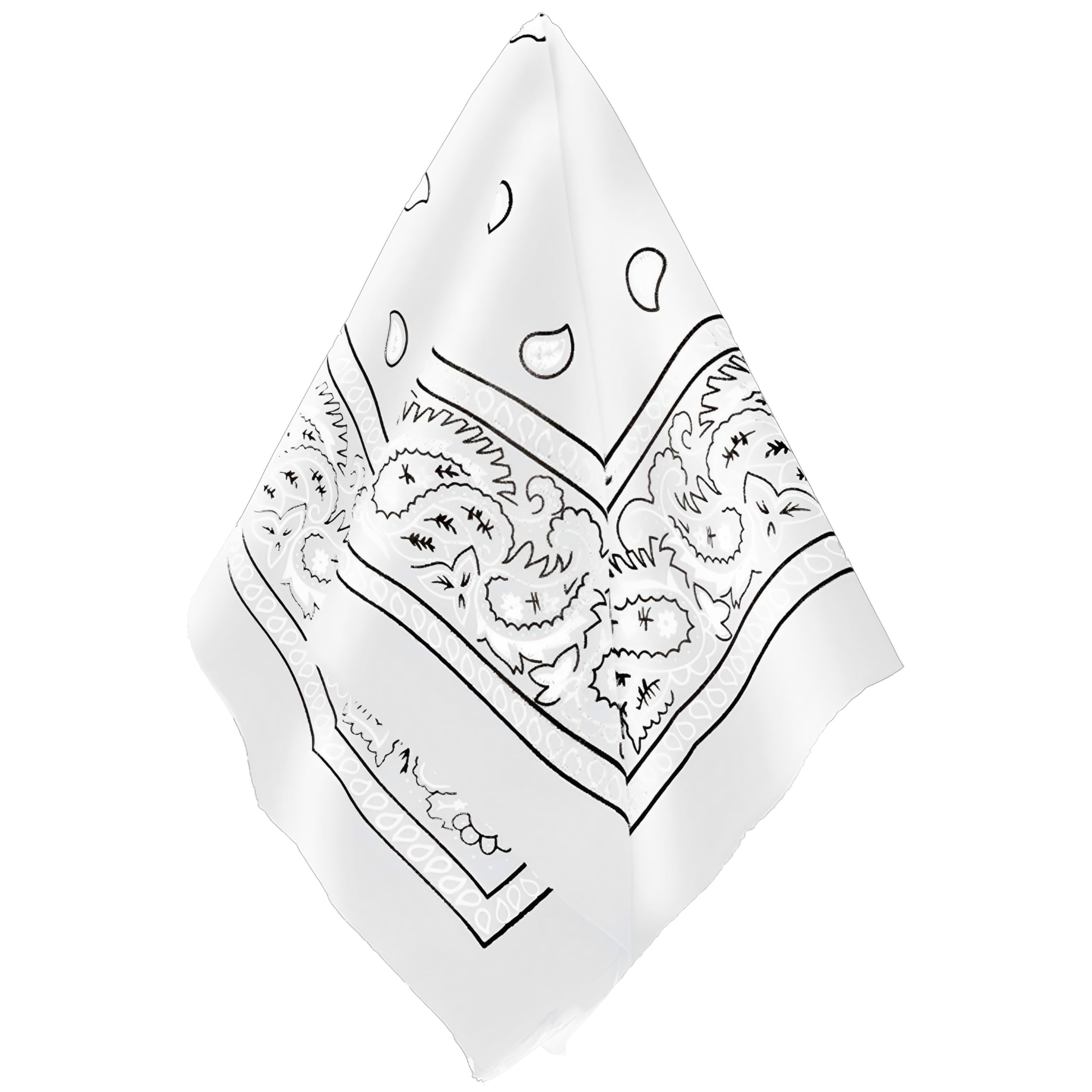 A white cowboy bandana is a timeless and versatile accessory, offering a clean and classic look. Made from soft, breathable fabric, it features traditional paisley for Western-inspired patterns. Whether worn around the neck, as a headband, for used for practical purposes like dust protection for wiping sweat, the white bandana provides both style and function. it’s neutral color makes it easy to pair with a variety of outfits, making it a staple in Western fashion and a popular choice for those seeking a simple yet iconic accessory.