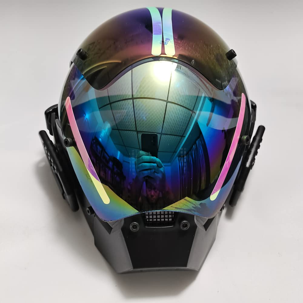 Step into the neon-lit future with this futuristic Cyberpunk Helmet, designed to give you that unmistakable dystopian edge. Featuring sharp angular lines and a sleek visor, this helmet perfectly blends high-tech aesthetics with streetwise attitude. Whether you’re hitting a cosplay event, a themed party, or just want to upgrade your sci-fi costume, this helmet makes a bold statement of rebellion and tech-savvy style.