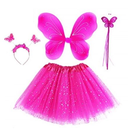 The Bright Pink Fairy Set includes a vibrant pink tutu skirt, sparkling wings, a matching wand, and a cute headband, all in a bold bright pink color. Perfect for little ones to dress up as fairies for parties, costume events, for imaginative play, this set adds a fun and energetic touch to any magical look.