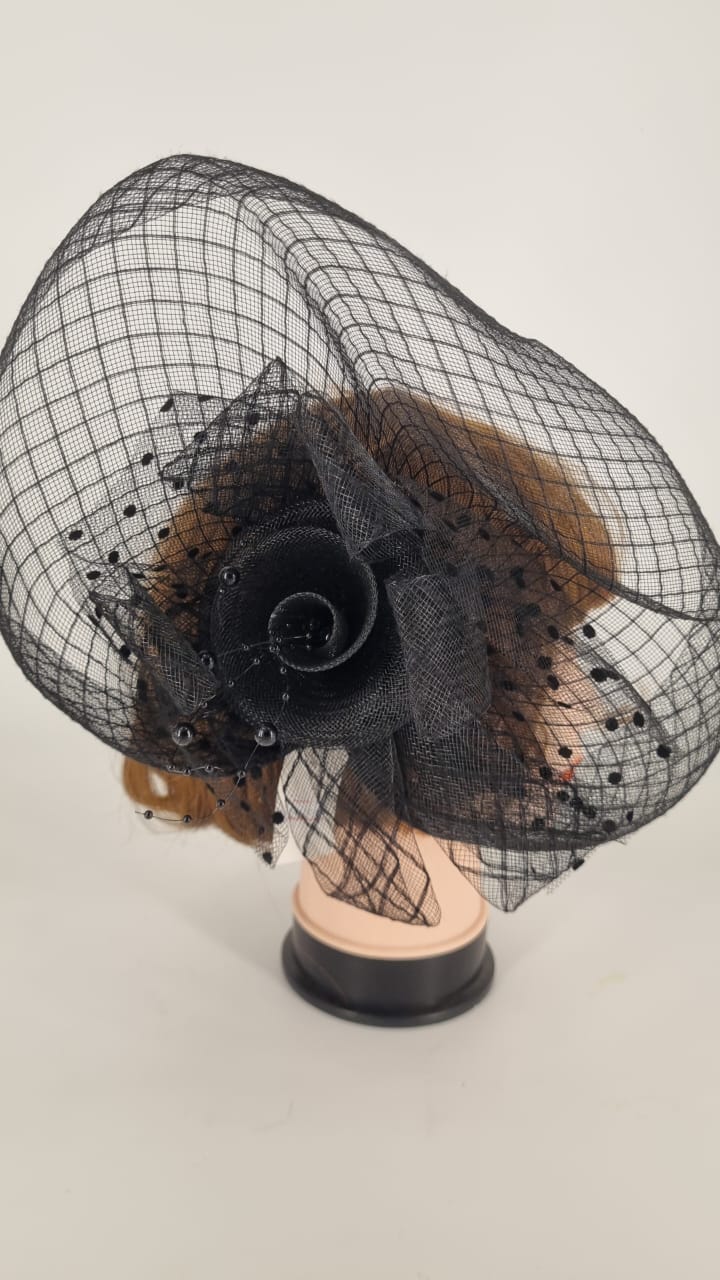 Elegant black fascinator with a delicate veil and a stunning rose design, perfect for weddings, Bridgerton-inspired events, races, or special occasions. A sophisticated and chic accessory that adds a touch of mystery and glamour to any outfit!