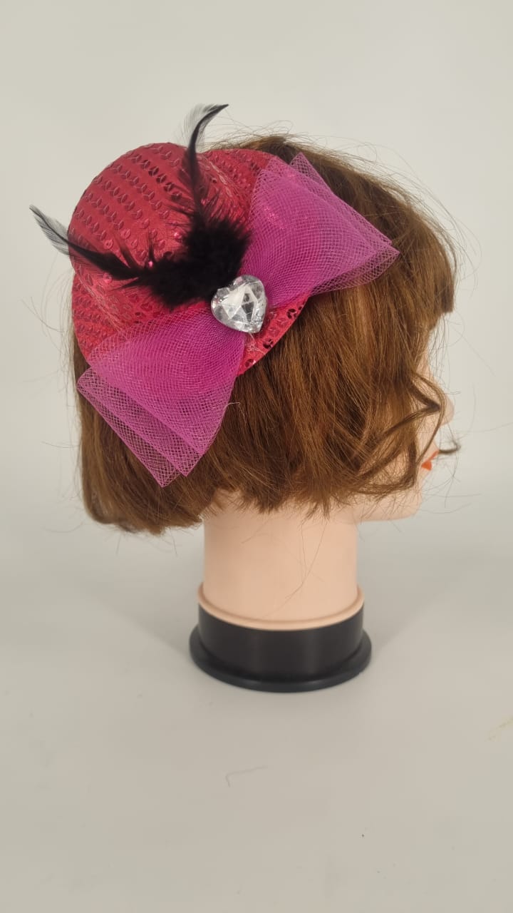 Vibrant bright pink fascinator with sequin detailing, perfect for weddings, Bridgerton-inspired events, races, or special occasions. A bold and glamorous accessory that adds a pop of color and elegance to any outfit!