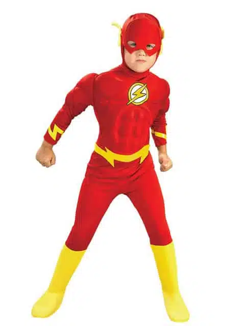 Become the Scarlet Speedster with this Flash Muscle Jumpsuit and Material Mask. Perfect for Halloween, cosplay events, or themed parties, this costume features a detailed jumpsuit with built-in muscle padding to emulate the Flash’s athletic build. The vibrant red design with lightning bolt accents captures the essence of the fastest man alive. The material mask completes the look with the Flash’s iconic lightning bolt emblem and eye mask, making it ideal for fans of all ages looking to embody speed and heroism.