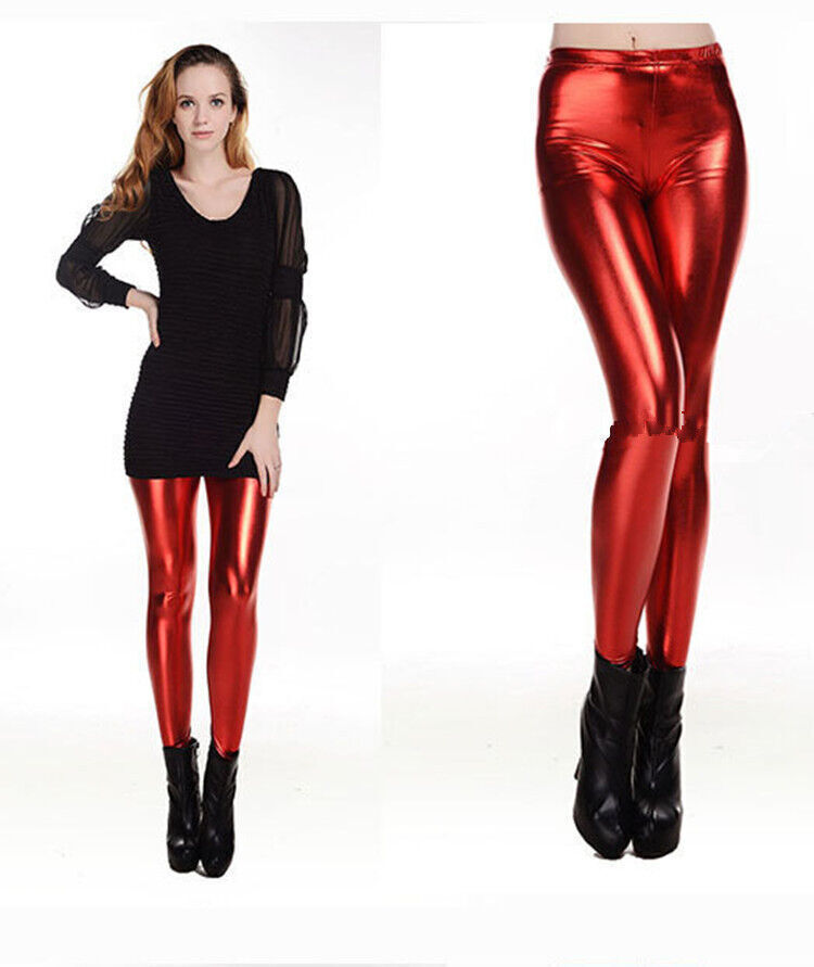These vibrant red foil leggings feature a shiny, reflective surface that adds a bold, eye-catching touch to any outfit. Made from a stretchy, form-fitting material, they offer comfort and flexibility while hugging your curves. Perfect for a night out, workout sessions, for a fun, stylish look, these leggings can easily be paired with casual for dressy tops. The metallic finish gives them a unique, futuristic appeal, making them a standout piece in your wardrobe.