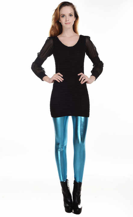These vibrant turquoise foil leggings feature a shiny, reflective surface that adds a bold, eye-catching touch to any outfit. Made from a stretchy, form-fitting material, they offer comfort and flexibility while hugging your curves. Perfect for a night out, workout sessions, for a fun, stylish look, these leggings can easily be paired with casual for dressy tops. The metallic finish gives them a unique, futuristic appeal, making them a standout piece in your wardrobe.