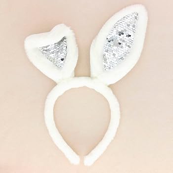 Furry White Sequin Bunny Ears