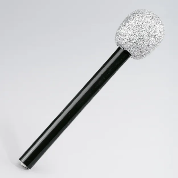A glitter silver microphone, featuring a sparkling silver finish with a touch of glitter for extra shine. Perfect for performances, parties, for events, this microphone adds a fun, glamorous flair while offering a stylish and eye-catching look.