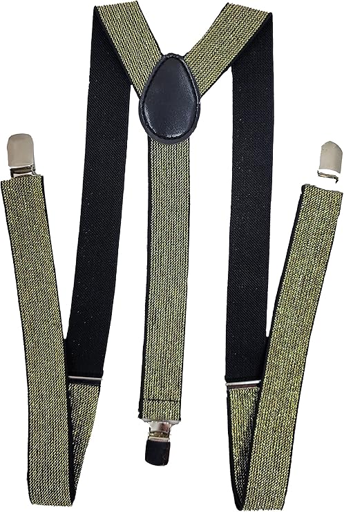 With adjustable straps for a personalized fit and sturdy clips for effortless trouser attachment, these suspenders blend practicality with sparkling elegance. Whether you’re dressing up for a special occasion or making a statement with your everyday attire, these glitter black and gold suspenders are sure to turn heads.