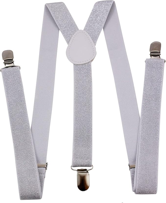 With adjustable straps for a personalized fit and sturdy clips for effortless trouser attachment, these suspenders combine practicality with elegant flair. Whether you’re dressing up for a special occasion or making a statement with your everyday attire, these glitter silver suspenders are sure to shine.