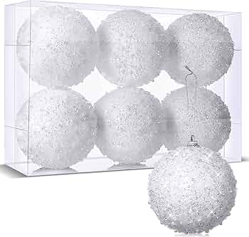 Glitter white Christmas balls are beautiful ornaments that feature a sparkling, glittery finish on a white surface. These balls add a touch of elegance and shimmer to Christmas trees, wreaths, or holiday displays, creating a wintry, magical look