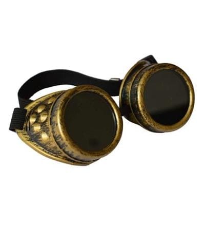 Gold steampunk goggles would have a striking metallic gold frame with round or oval lenses, exuding a luxurious and vintage industrial vibe. These goggles would be adorned with intricate details like gears, rivets, and metal straps, all in gold to enhance the steampunk aesthetic. Some designs may include side vents, leather accents, or adjustable lenses. The gold color adds an elegant and bold look, making them a perfect accessory for a steampunk outfit or a statement piece with a blend of Victorian charm and opulent flair.
