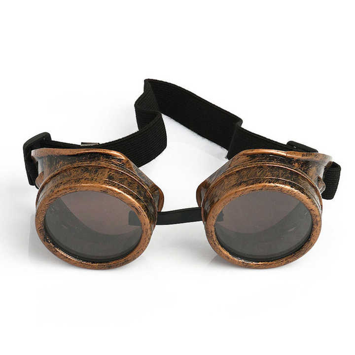Plain bronze steampunk goggles would have a sleek, minimalist design, featuring a simple metallic bronze frame with round or oval lenses. They would lack elaborate embellishments, making them more understated yet still showcasing the vintage, industrial steampunk aesthetic. The goggles would be lightweight, with an elastic band around the head for comfort and secure wear. The focus would be on the rich bronze finish, giving them a timeless, rugged look without extra decorations. These goggles would pair well with both casual and more elaborate steampunk outfits.
