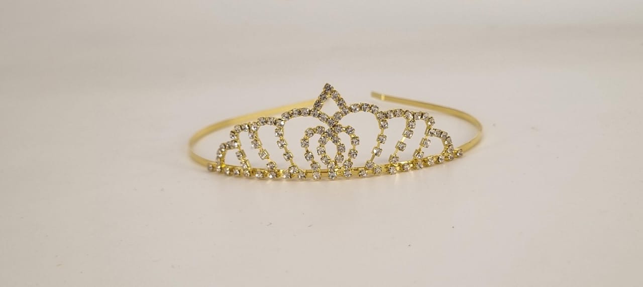 Step into the spotlight and shine like royalty with our stunning Gold Mini Metal Tiara with Sparkling Diamantes! πŸ’–βœ¨