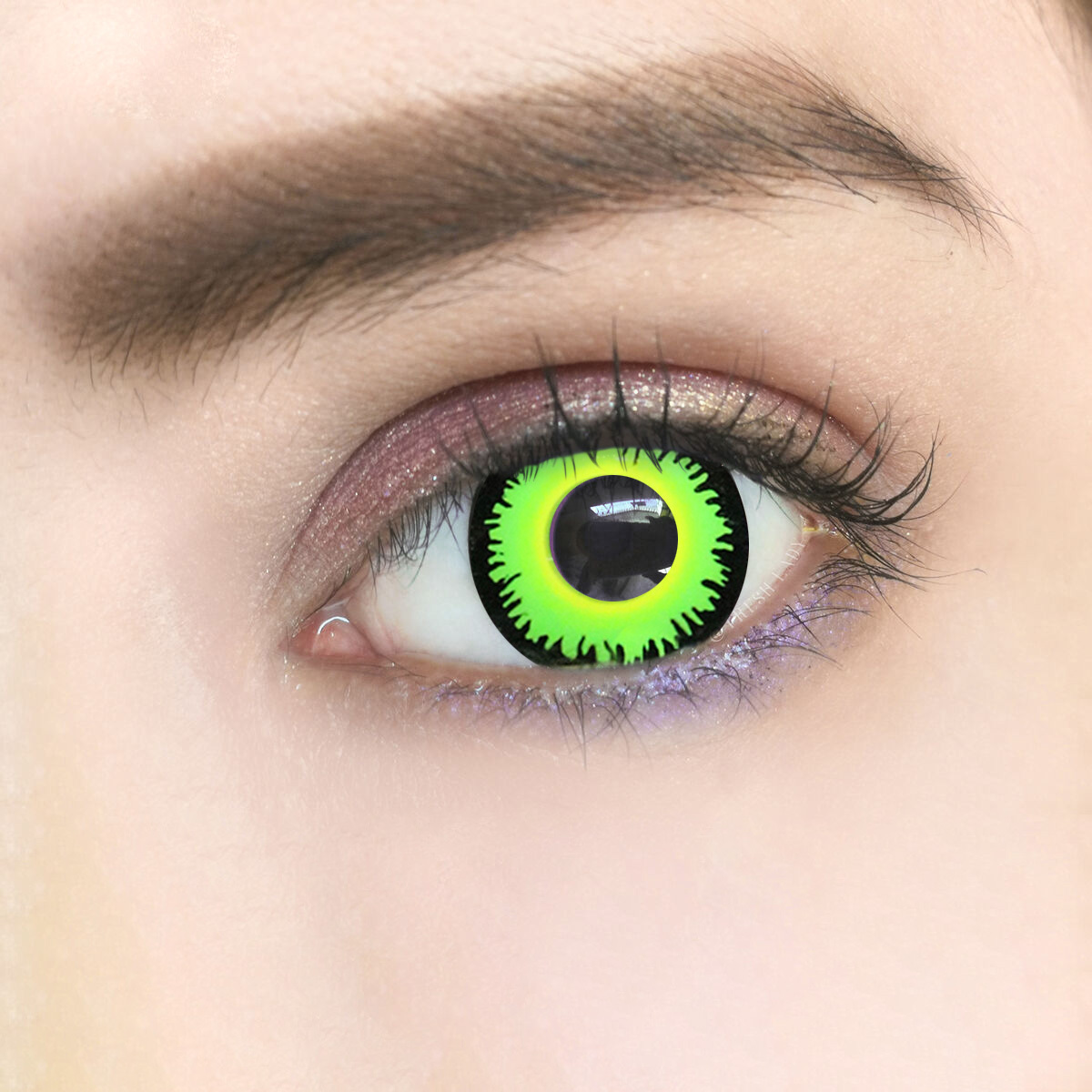 Embrace your wild side with Green Werewolf Contact Lenses. These lenses feature a vivid green color combined with a fierce, wolf-inspired design, perfect for transforming your eyes into an intense, supernatural look. The bold green hue gives a dramatic, animalistic appearance, making them ideal for Halloween, costume parties, cosplay, for theatrical performances. Perfect for anyone looking to stand out with a bold, unforgettable werewolf-inspired style!