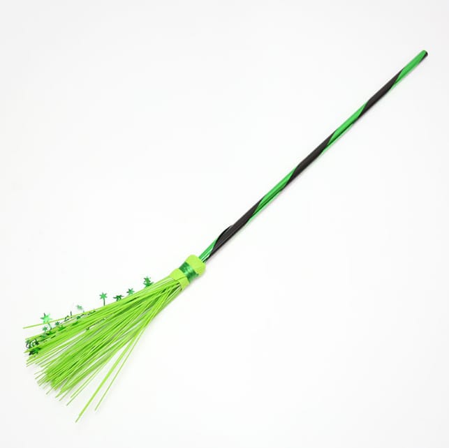 A striking green witch broomstick with twinkling stars, adding a mystical and playful touch to any witch costume.
