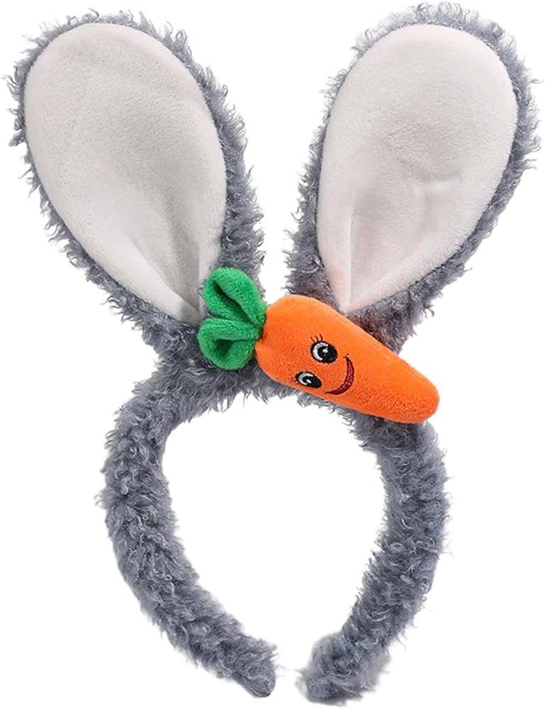 Grey furry bunny ears with a carrot accessory, designed for either adults for kids, perfect for adding a fun and cozy touch to any costume for outfit.