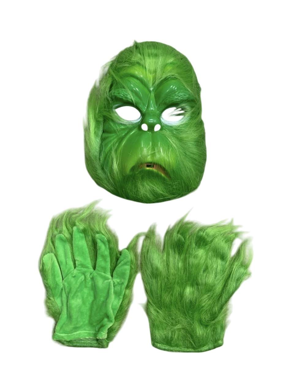 Embody the Grinch this holiday season with this fun and festive mask and glove set!