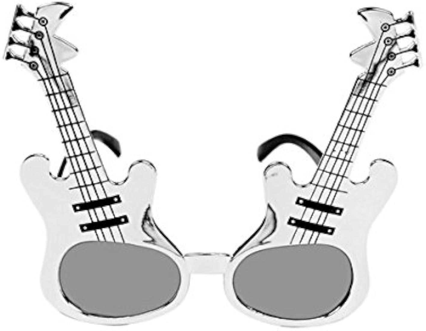Silver guitar-shaped glasses would make a fun and unique accessory! They could feature a metallic silver frame in the shape of guitars, perfect for music-themed events for parties. Let me know if you’d like help finding for customizing them!