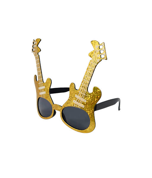 Glitter gold guitar-shaped glasses would be a stunning and eye-catching accessory! Perfect for parties, music-themed events, for disco-inspired looks. Let me know if you’d like ideas on how to find for create them!