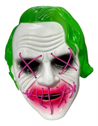 Unleash the madness with this Joker Mask, featuring green hair and glowing purple LED lights that add a vibrant, eerie glow to your look. Perfect for Halloween, cosplay, or any villainous event, this mask is designed to captivate and shock. Durable, comfortable, and full of chaos!